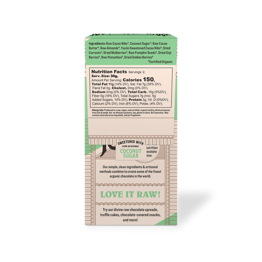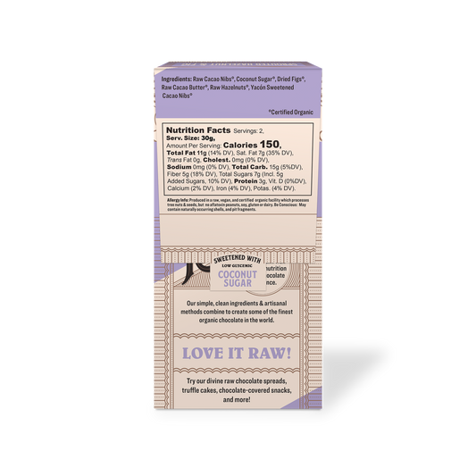 Organic Stone Ground Gourmet Sprouted Hazelnut & Fig Raw Chocolate Bark 2.12 oz