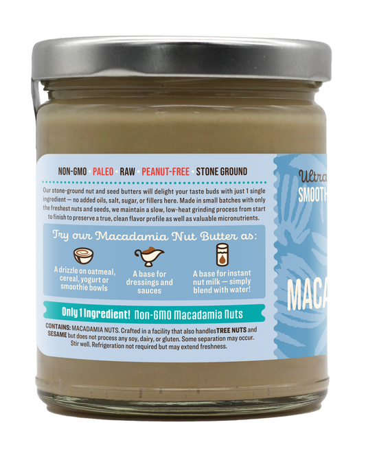 Always single ingredient, you'll never find added oils, salt, or sugar in our organic nut and seed butters. Our gentle stone grinding process results in a beyond silky-smooth texture and ensures that vital heat-sensitive nutrients, such as antioxidants and essential fatty acids, remain intact for your ultimate nourishment.