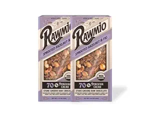 70% stone ground raw chocolate topped with crunchy sprouted hazelnuts, sweet and chewy figs, and lightly sweetened cacao nibs.