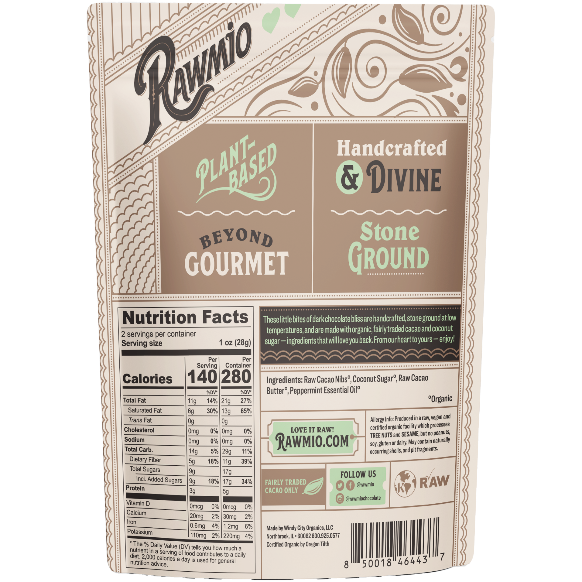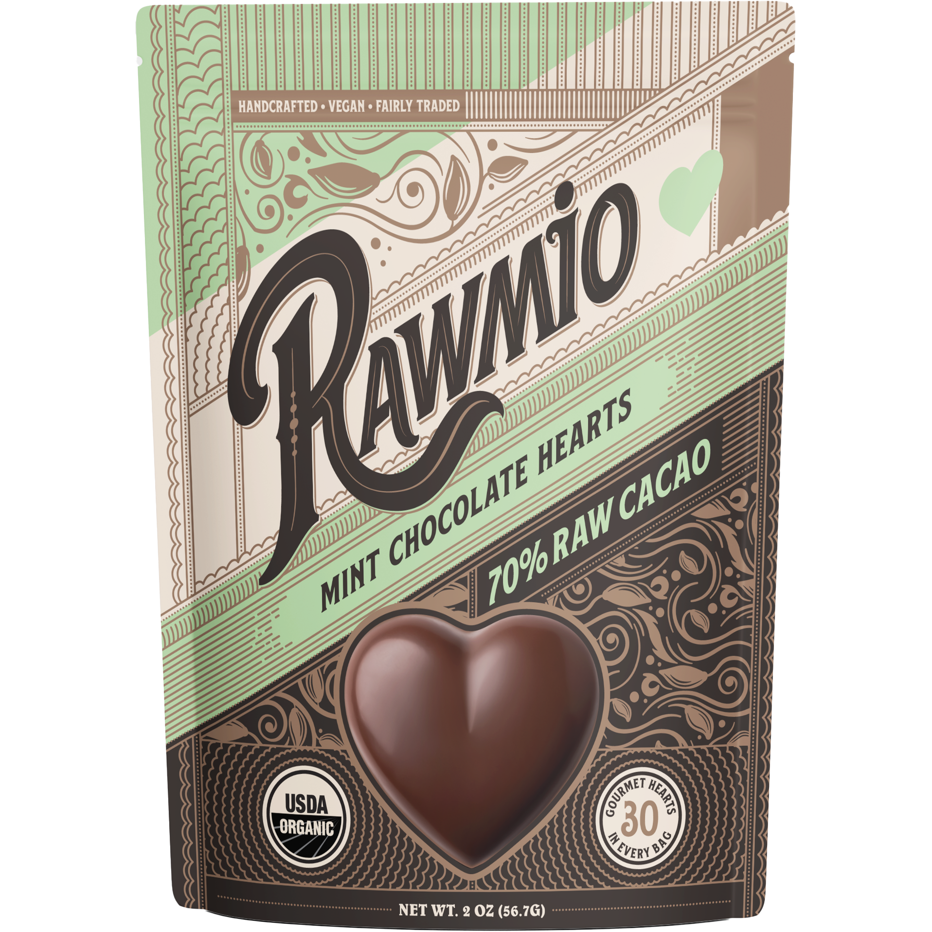 A heart is the world's most universal symbol of love, and as chocolate is love made edible, we decided combining the two was about as perfect a combination as there could be. These little bites of mint chocolate bliss are handcrafted, stone ground at low temperatures, and made with organic, fair trade cacao, low-glycemic coconut sugar, and a refreshing infusion of pure organic peppermint essential oil. This is pure, unadulterated Rawmio chocolate love.