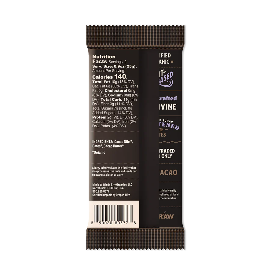 Cacao Nibs°, Dates°, Cacao Butter°.